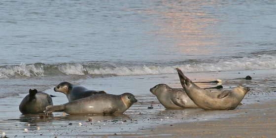 Zeehonden op een zandplaat.