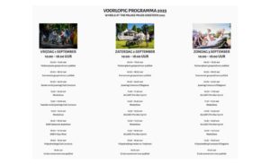 “Wheels At The Palace is een evenement waar vele prachtige oldtimers, moderne en toekomstige auto’s tentoongesteld worden en er een spannende Pre-War Sprint wordt gereden, maar het evenement op Paleis Soestdijk is meer dan alleen automobilia. Zo is er een Modeshow waar de nieuwste kledingstukken worden getoond, een Royal Fair waar er kunst, kleding of andere mooie producten gekocht kunnen worden, een boekenmarkt om in te snuffelen en een Trapauto Race voor de kinderen.”
